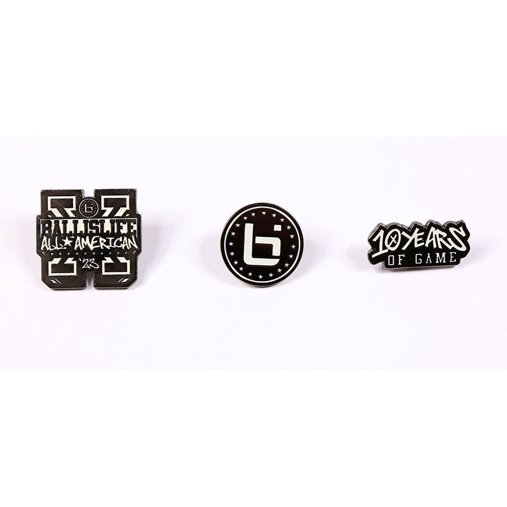 3 pin set | Ballislife All-American B Logo, X Logo, and 10 Years Logo -
